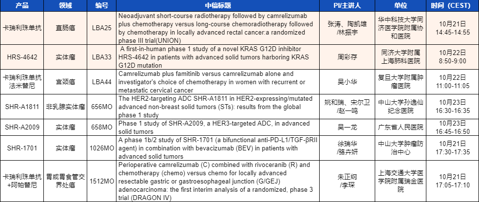 ESMO 2023 AG真人医药产品相关研究一览